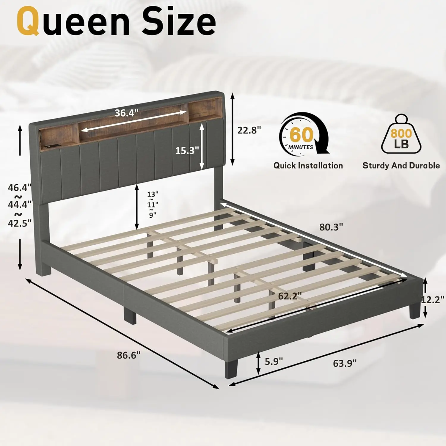 - 【Upholstered Storage Headboard】The appearance of the headboard is made of high-quality linen fabric,with a built-in high rebound memory sponge. It features 2-Tier Storage shelves, making it easy for you to place commonly used items within easy reach.